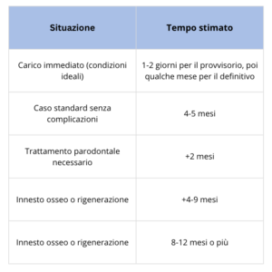 Se l’osso non è sufficiente, servono tecniche di rigenerazione ossea o innesti, che allungano i tempi di qualche mese prima di poter procedere con gli impianti.